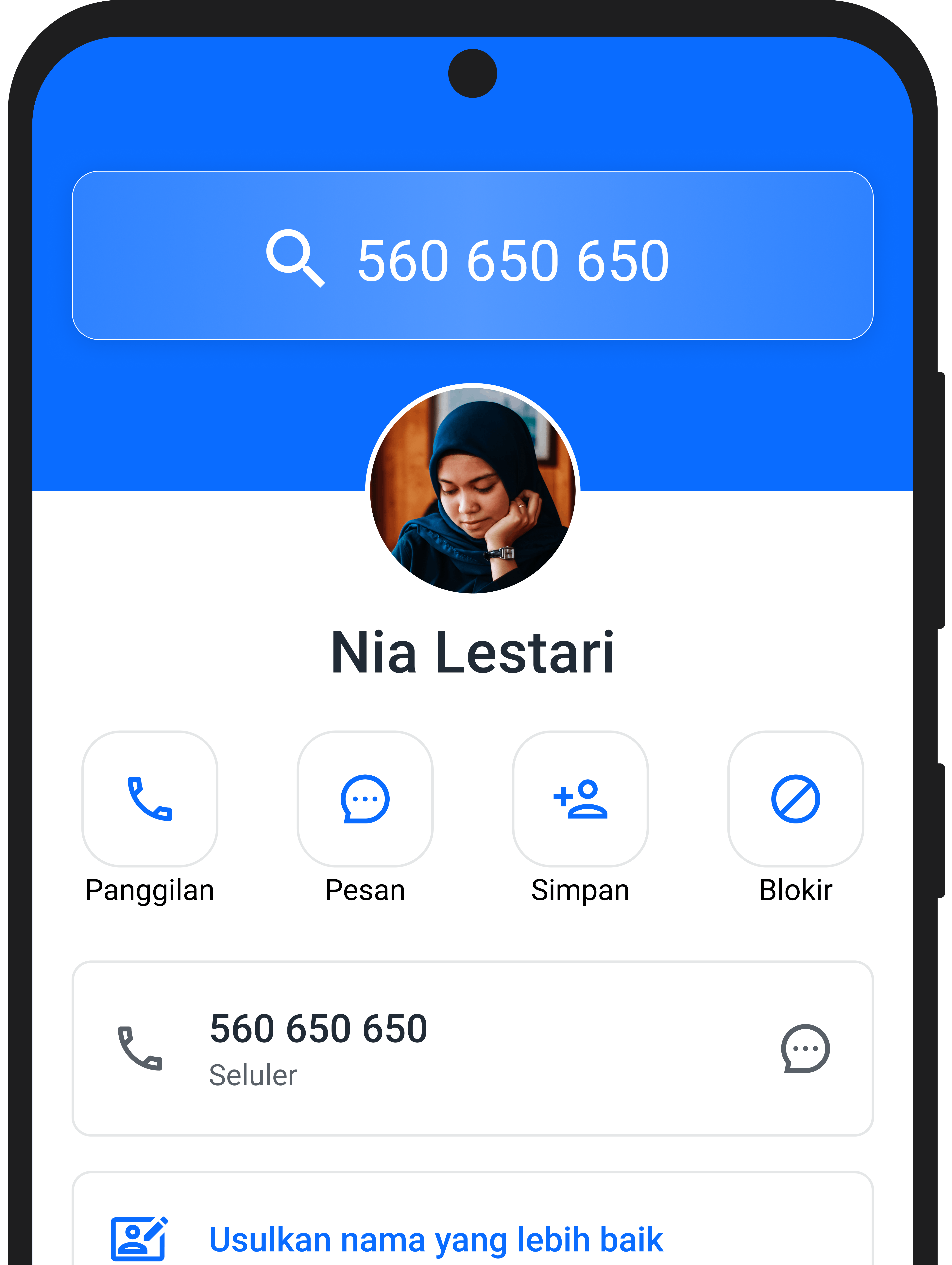 Truecaller hanya mengizinkan pencarian terbatas di website. Untuk pengalaman terbaik, unduh aplikasi Truecaller dan dapatkan akses ke identifikasi penelepon, serta deteksi spam dan pemblokiran otomatis.