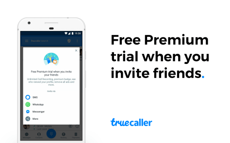 Psst! Have you heard? You can invite your friends to join the Truecaller community and earn rewards! Refer a friend, and you both get free Truecaller Premium for a week when your friend joins!