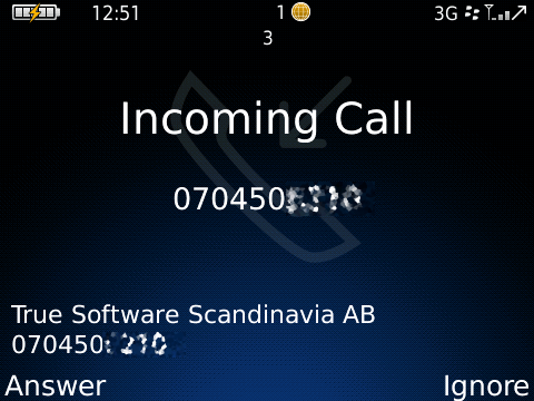 See how it displays that True Software Scandinavia AB is the caller even though I don´t have the number stored in my phonebook.It works on both incoming and outgoing calls!