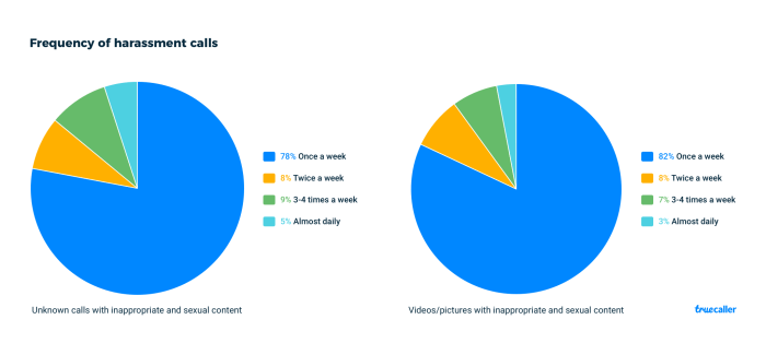 It comes as an ugly truth that 1 out of 3 (36%) women in India is receiving sexual and inappropriate calls or SMS’. Of those, 78% of women claimed to receive harassment calls with inappropriate and sexual content at least once a week, and 82% claimed to receive unsolicited videos and pictures with inappropriate and sexual content at least once a week.
