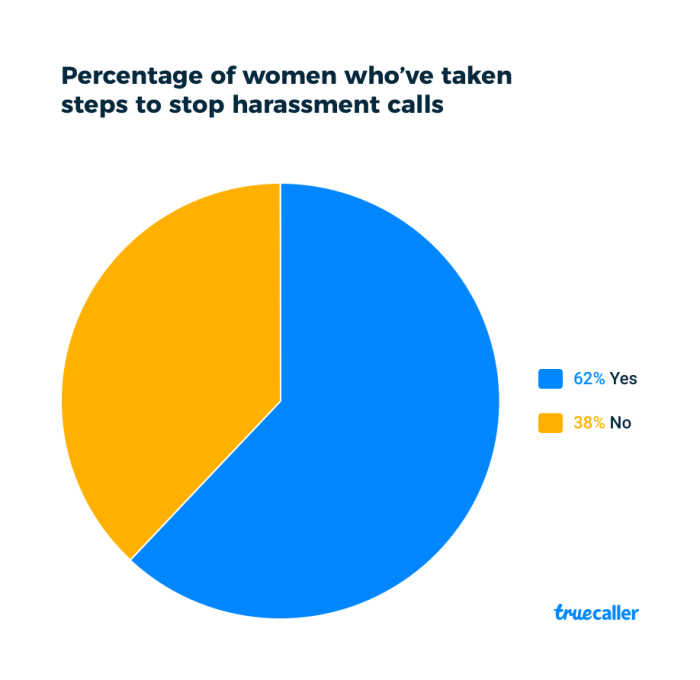 Close to two-thirds (65%) of women reported feeling angry or irritated by harassment calls, while almost one-fourth (22%) felt troubled, worried or offended.In the report, we also found out that close to two-thirds (62%) of the women have taken measures against these calls, which is very encouraging.The most common (65%) way observed to tackle this problem was to block the harasser’s number, install a call blocking app (48%) or search for the number online (41%.) Only 10% of all women filed a complaint with the police (10%) or named-and-shamed the spammer on social media (7%).