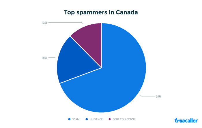 Debt collectors are also very active in spamming our users in Canada (12%.)