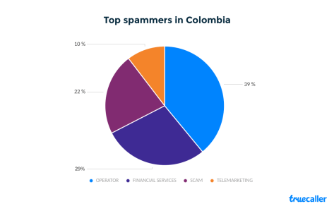 Today, Colombia is the tenth most spammedcountry in the world. The majority of spam calls come from operators (39%) andfinancial services (29%,) followed by a big chunk of scam calls (22%.) In ourdata, we can see many of these fraudulent calls are ‘insurance related’ –meaning someone pretending to be from an insurance company and wanting to signyou up for something and charge you.