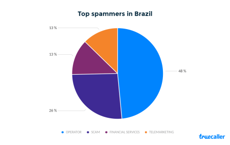Almost every other spam call in Brazil is being madefrom the operators and Internet service providers. In the past 12 months, callsfrom the operators have increased from 32% to 48%. These calls are typicallyseeking to provide special offers and upselling data plans amongst otherservices.