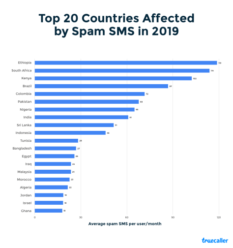 Truecaller Insights: Top 20 Countries Affected by Spam Calls & SMS in 2019