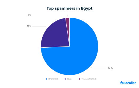 The biggest spammers in Egypt are the operators and telecom serviceproviders looking toupsell various offers and balance reminders. Scam calls is also a common thingin Egypt, where almost a quarter of all spam calls are scam related.