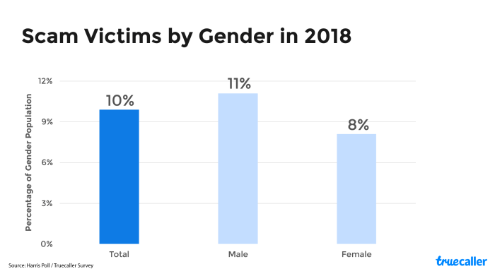 Despite reporting a low average number of spam calls received per month (14.2), males aged 18-34 also reported a high instance of lost money with nearly a quarter (24%) claiming they’d been victimized by a phone scam in the past 12 months. Overall men (11%) reported being victimized slightly more than women (8%).