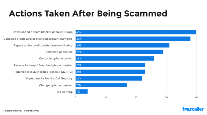 As a result of being scammed, an overwhelming majority (96%) of those victimized said they took some action as a result.