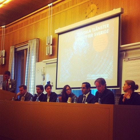 The panelists included (starting from left) Fredrik von Essen (IT&Telekomföretag), David Mothander (Nordic Policy Advisor, Google), Andreas Bernström (CEO, Rebtel), Karl Wennberg (Deputy …