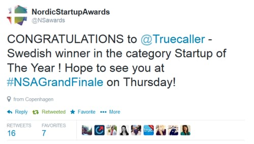 What an honor! Last week, Truecaller was announced as Nordic Startup Award's choice as 'Swedish Startup of the Year.' This is all thanks to our hard working team, and also the votes from our users. We are constantly trying to improve the Truecaller app for the world to benefit from, and enjoying the journey!
