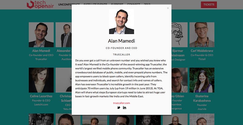Join us in Berlin next month at the Tech Open Air event! Our co-founder and CEO, Alan Mamedi, will be giving a presentation on Truecaller's evolution from an app made just for him and his co-founder, to being used by 70 million people!