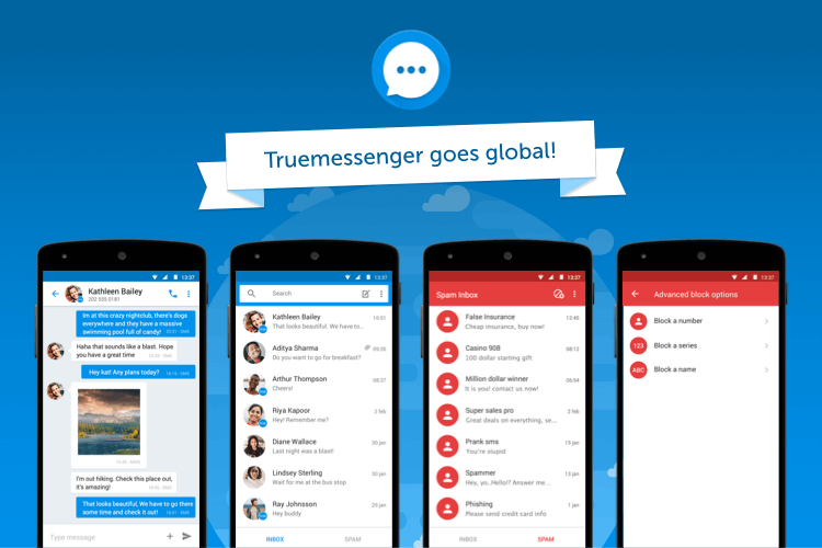 The app is integrated with the Truecaller community of 150 million users, and has a network of more than 1.7 billion numbers from across the globe. With this integration, Truemessenger pulls information from social networks and automatically assigns photos, nicknames, and other contact information to incoming texts. Truemessenger even enables you to assign your own spam rules, just like you can with email. SMS spam is then either filtered out of your inbox or blocked altogether, so your inbox is kept clean, and you’re never left guessing who might be trying to reach you.