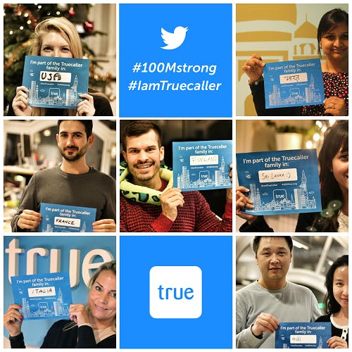 In honor of us surpassing 100 million users, we invite every one of you to let us know you are part of the Truecaller family, and in return, we will bring a little piece of you to our headquarters in Stockholm, Sweden; in picture form!
