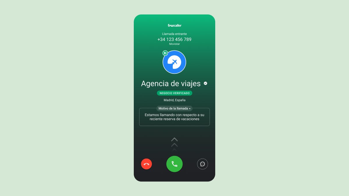Si tu pantalla se vuelve verde, significa que una empresa verificada por Truecaller te está llamando. Esta es la forma más fácil de saber si la persona del otro lado de la llamada realmente te llama desde la empresa que dice llamar. Lo llamamos Truecaller para Empresas y con esto estamos haciendo que sea más fácil para ti saber si una llamada es de una empresa legítima, así como ayudando a las empresas a llegar a sus clientes. Nota: A veces puedes ver un número verificado marcado como spam. Esto podría deberse a que las personastodavía la encuentran como inutil y deciden marcarla como spam. Esto no es algo que recomendamos.