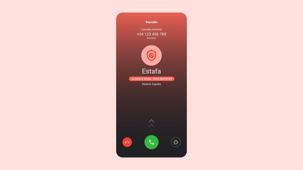 Una llamada quees marcada como spam hará que tu pantalla se vuelva roja. Esto es posible gracias a la comunidad Truecaller, conformada por más de 300 millones de personas, que reportan números como spam. Para entender más acerca de los números marcados como spam, mira las estadísticas de spam en tu aplicación de Truecaller para Android. Las estadísticas te dirán cuántos reportes de spam tiene el número, así como la hora en la que el spammer usualmente llama y si los reportes de spam han aumentado en ese número en particular. Así que si ves que tu pantalla se vuelve roja, no contestes.