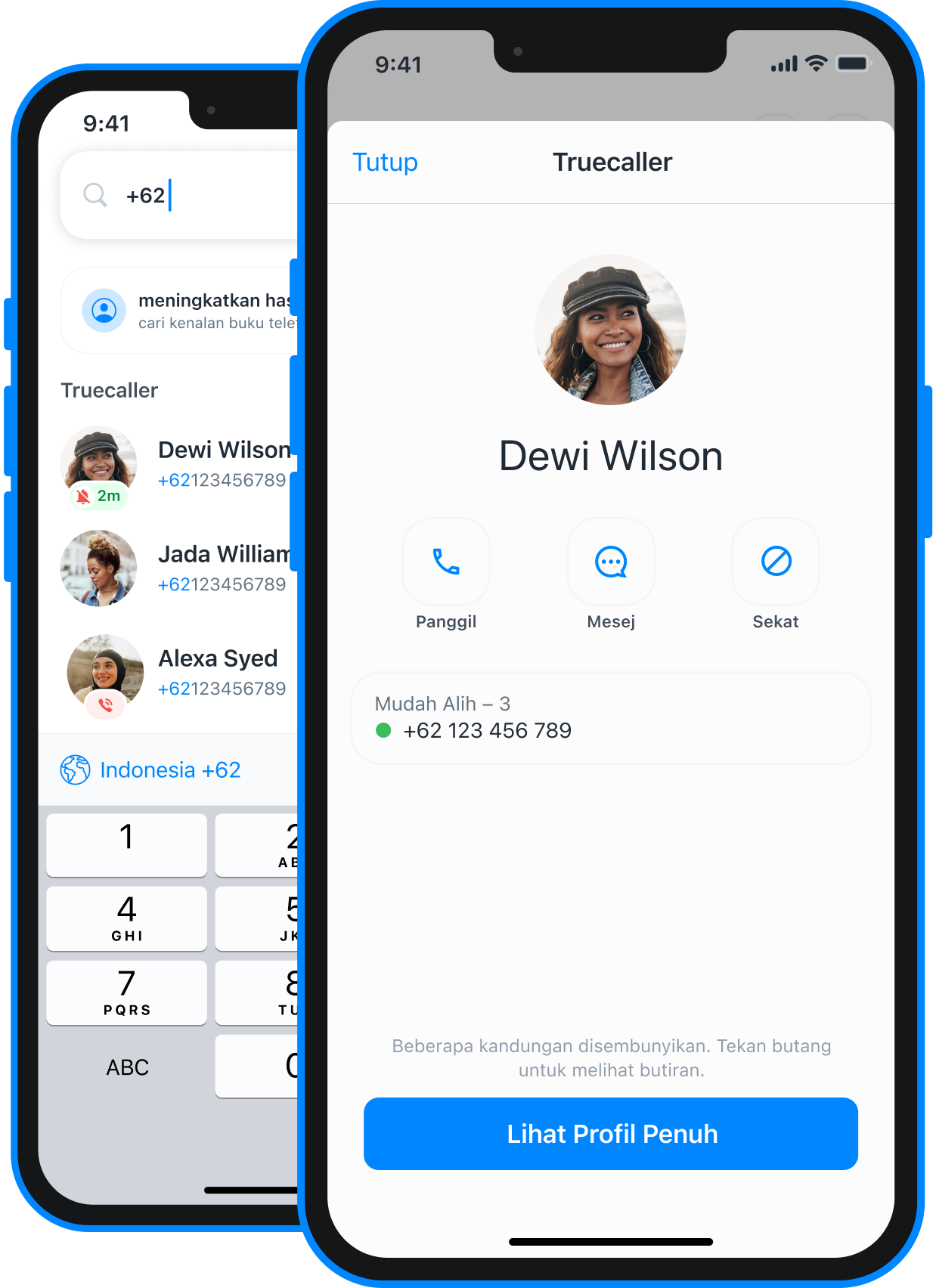 Truecaller diciptakan untuk membantu Anda mengontrol siapa saja yang dapat menghubungi Anda. Fitur-fitur kami berbasis izin dan permintaan Anda. Andalah yang menentukan cara menggunakan aplikasi ini.