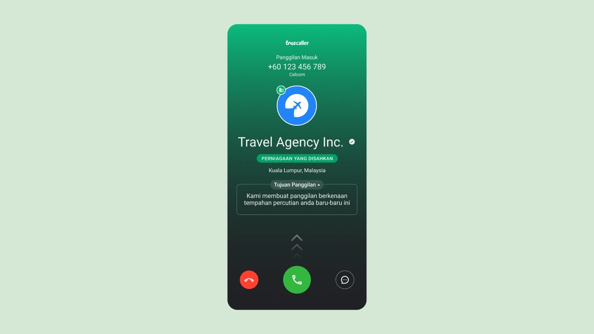 Hijau bermaksud Perniagaan yang Disahkan oleh Truecaller