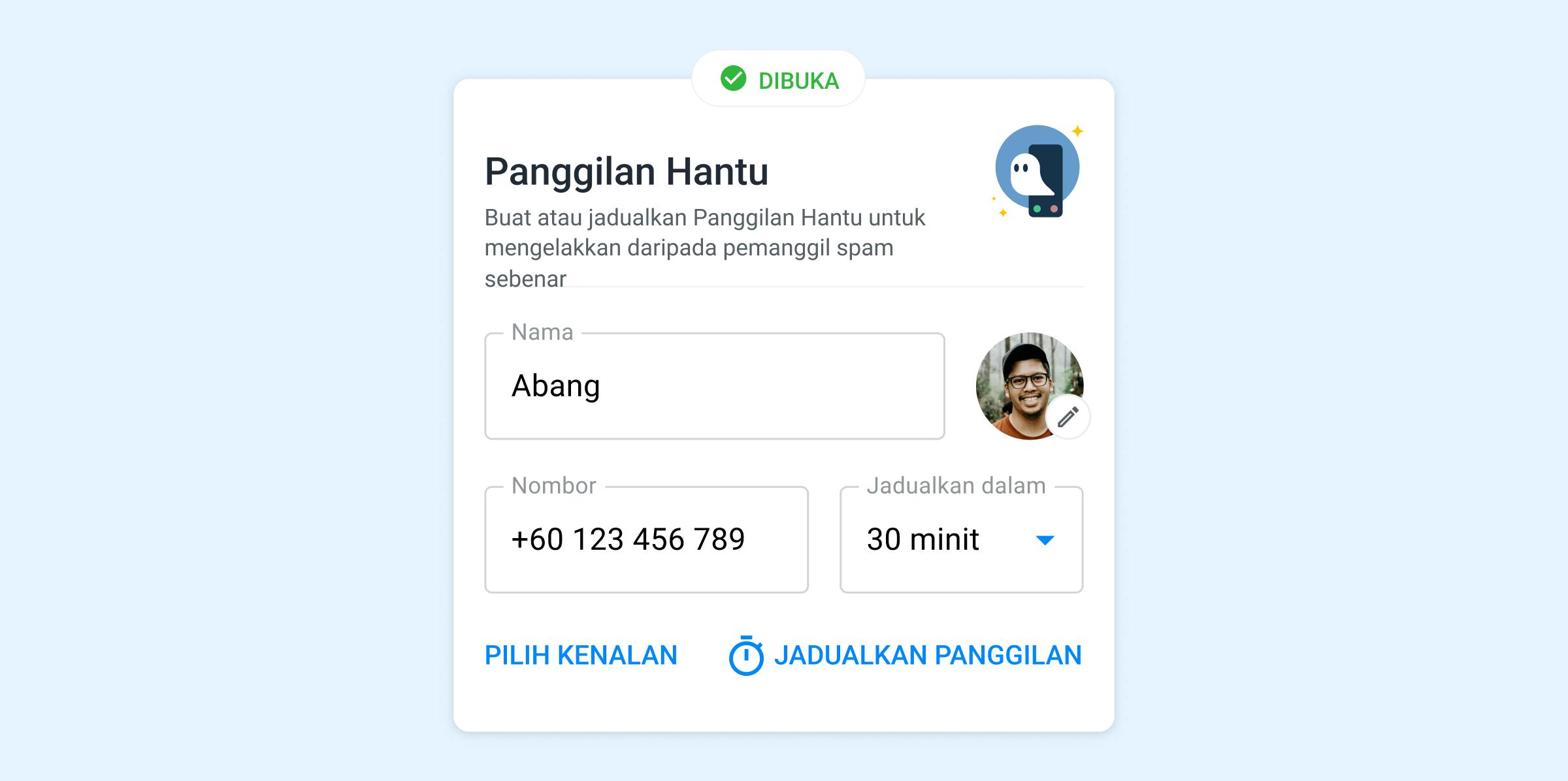 Sama ada di rumah, pejabat atau acara sosial - kita semua cuba menumpukan masa kepada orang di sekeliling kita sepanjang hari. Selalunya ketika itu, kita cenderung terperangkap dalam situasi yang sangat memalukan. Pada masa-masa ini, kita hanya perlu menjauhkan diri tetapi tidak dapat mencari jalan untuk mengelak atau menyelamatkan diri tanpa bersikap tidak sopan. Dengan pemikiran ini, pasukan inovatif di Truecaller menghasilkan idea 'panggilan pura-pura'. Setelah beberapa bulan mengerjakan prototaip dan memperhalusi ciri ini – voila! Hari ini, ciri Panggilan Hantu tersedia dan beroperasi dalam Truecaller.